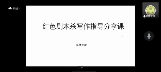 随后,高楼大厦系统讲解如何进行剧本杀创作,他从分幕创作、玩家感受等角度进行讲授,帮助同学们摆脱小白思维,从而创作出更高质量的的剧本杀作品。高楼大厦老师的讲课内容详实、生动有趣,且语言随和,富有亲和力,深受同学们的喜爱。课程中同学们认真听讲、积极提问,高楼大厦细心认真地解答同学们的困惑。两个小时的线上课程圆满结束。