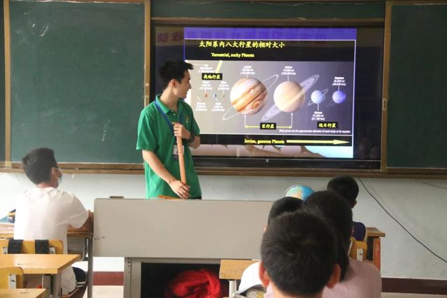在之后的课堂里,张老师教授的内容难度逐渐加深。他以比邻星与太阳的距离为例,为孩子们讲解如何在浩瀚的宇宙中确定恒星间的距离。他通过教授太阳的周年视运动,让孩子们明白了四季星空何以会变化。在教授过程中,张老师注重融合孩子们已经学习过的数学、地理等知识,使孩子们更加便于理解课堂内容。