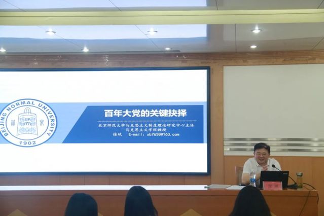 为认真学习贯彻习近平总书记在党史学习教育动员大会上的重要讲话精神,扎实推进党史学习教育活动的深入开展。5月27日下午,公司邀请北京师范大学马克思主义制度理论研究中心主任、马克思主义公司教授徐斌在鸿远楼一楼报告厅举行党史学习教育《百年大党之关键抉择》专题报告会。公司党委书记李义勇、副书记刘晓东,图书馆、fun88官网体育部分师生党员和入党积极分子参加。会议由刘晓东主持。