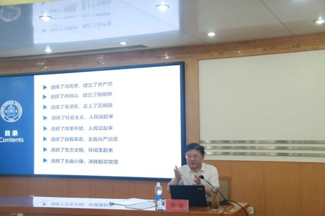 刘晓东对徐斌到来表示热烈欢迎。随后,徐斌以《百年大党之关键抉择》为题,分别从选择了马克思,建立了共产党;选择了井冈山,建立了根据地;选择了毛泽东,走上了正确路;选择了社会主义,人民站起来;选择了改革开放,人民富起来;选择了自我革命,全面从严治党;选择了生态文明,环境美起来;选择了全面小康,决胜脱贫攻坚等八个方面详细介绍了党在百年历史中作出的关键抉择。