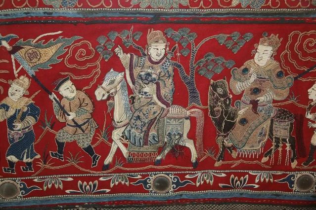 乾隆年间,潮州西门外天地坛、布梳街以及开元寺附近,已有绣庄20多家,绣品输向新加坡、泰国、马来西亚一带,占领南洋市场,特别是带有民间浓厚地方特色的厅堂,佛庙摆设的绣品更是供不应求。