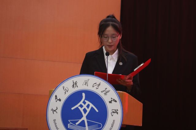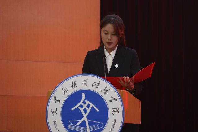 新生代表、中教2203班团支书曾红发言,表示将从树立目标、勤学苦练,严以律己、提高素质,以梦为马、不负韶华三个方面不断努力,坚定强国之志,落实报国之行,谨遵“厚德、博学、笃行、至善”的校训,秉承“谦谦君子,温润如玉”的院训,争当新时代有为青年。