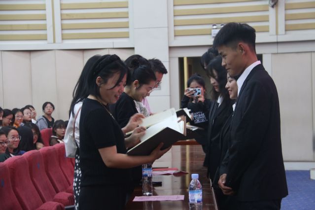 各班级代表向班级导师敬献班级手册。
