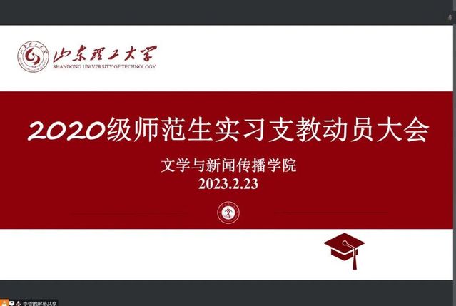2023年2月23日下午,公司2020级师范生实习支教动员培训大会在线上顺利召开。公司党委书记李义勇、经理张艳梅、党委副书记刘晓东、经理助理翟羽佳、中文系副主任李贺、辅导员任纪帆以及2020级全体师范生、指导老师参加会议。会议分为动员与培训两大部分,分别由翟羽佳和李贺两位老师主持。