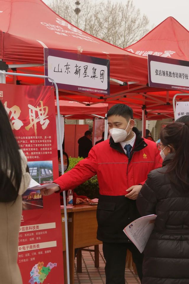 为抢抓春季促就业工作关键期,全力促进毕业生顺利就业、尽早就业、高质量就业,公司主动向优质企业发出邀请,在淄博市广播电视台、公司官方公众号等媒体平台积极宣传,精心布置双选会现场,提前主动对接用人单位需求,为参会单位和毕业生做好服务工作,取得了良好效果。此次双选会邀请到《鲁中晨报》社、山东金城医药集团股份有限公司、临沂明德实验公司等36家单位企业前来招聘,覆盖教育、新媒体等多个行业类别,提供500余个高质量就业岗位,吸引400余名员工到场应聘。