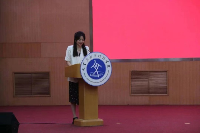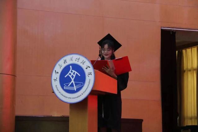2023届毕业生代表毛苏宁发言,她回顾了同文院相知相遇、与同学们携手共进的四年时光,细数共同经历的点点滴滴。随后,她代表2023届全体毕业生向公司领导老师表示由衷的感谢,感恩老师们四年来的谆谆教导和精心培育。她表示,文苑人聚是一团火,散是满天星,要持续学习、开拓进取,在追光逐梦的路上,不负韶华,不负未来,用实际行动回答好“时代之问”。最后,她衷心祝愿文院全体毕业生前程似锦,祝愿各位老师身体健康,祝愿文院和母校蓬勃发展。