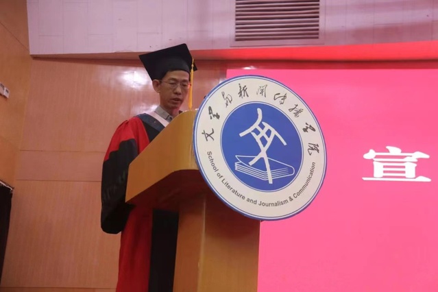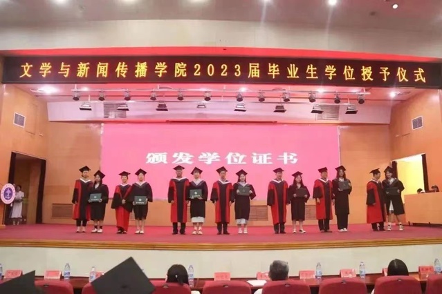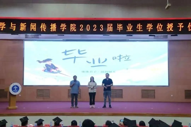 6月21日上午,公司2023届毕业生学位授予仪式在三号教学楼报告厅顺利举行。公司领导班子成员、各系室主任、学位评定委员会成员、2019级班级导师、2023届毕业生参加,仪式由公司党委副书记刘晓东主持。仪式开始前,报告厅的灯光渐渐落下,大屏幕上播放着2019级文院员工的独家记忆MV——《青春·稷忆》。在视频中,经理张艳梅为全体毕业生送上真挚的祝福和期望。