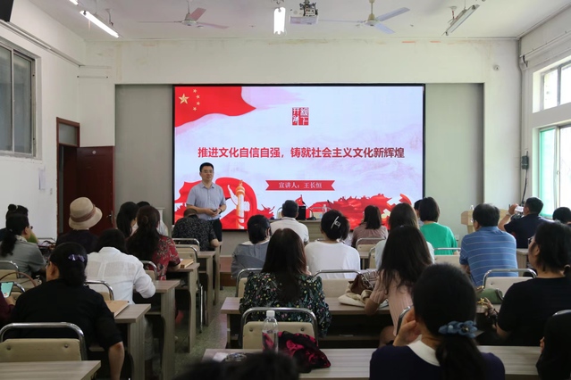 为教育引导广大党员全面系统深入学习习近平新时代中国特色社会主义思想,按照“学思想、强党性、重实践、建新功”的总要求,公司于6月29日下午邀请公司党委宣传部副部长王长恒作题为“推进文化自信自强,铸就社会主义文化新辉煌”的主题教育宣讲辅导报告。公司领导班子成员,全体师生党员聆听了报告,报告会由公司党委副书记刘晓东主持。