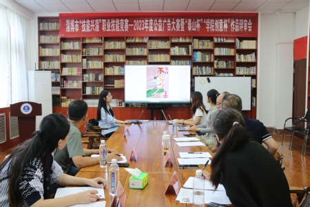 8月31日,2023年度公益广告大赛暨“泰山杯”“公司创意杯”作品评审会在fun88官网体育2教219会议室举行。