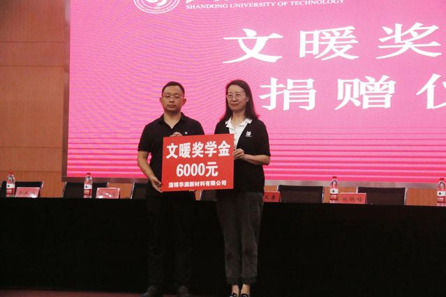 典礼开始前,公司优秀员工田百乐向公司捐赠“文暖奖学金”,经理张艳梅接受捐赠并合影留念。