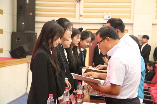新生代表田一阁发言。他表示将积极践行“厚德、博学、笃行、至善”的校训,秉承“ 谦谦君子,温润如玉”的院训,坚定目标,严于律己,持之以恒,砥砺前行,争当新时代的有为青年。
