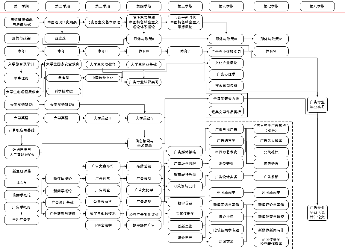 211514003 | 广告专业毕业实习 Graduation Practice of Advertising | 4.0 | 4周 | --- | 4周 | 8 | |||||||