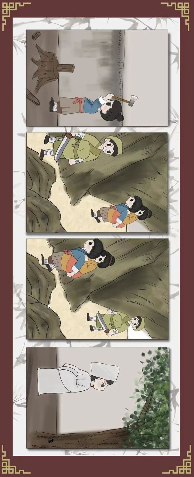 江革孝母的故事源于汉朝,一个非常孝顺的人,名江革,字次翁,年少父亲去世,和母亲相依为命,恰遇乱世,盗贼肆虐,背着母亲逃难。逃难途中几次遇到强盗,见他年轻力壮,想捉去一起做强盗,江革每次都哭泣地说:“我还有独自一人的老母亲,我如果跟你们去了,谁来照顾她?强盗听后,被他的孝心感动了,也不忍心捉他,就放了他。就这样江革背着母亲一路逃难,来到了一个叫下邳的地方,他贫穷到连衣服鞋子都没有,经常是赤着身体光着脚的……后来他去做苦力赚钱,用微博的工钱来照顾母亲,虽然贫穷,但只要是母亲所吃的,穿的,用的,却从来没有缺少过……后来江革的老母亲去世了,他感觉到悲痛,就住在母亲的坟旁,日夜思念着母亲,甚至连睡觉也从来没脱过孝服,百善孝为先啊,所谓孝感动天啊,后来被人看到了,看他这个人居然如此的孝顺,有如此好的德行,就推荐他做了孝廉,最终呢,一直做到了谏议大夫。