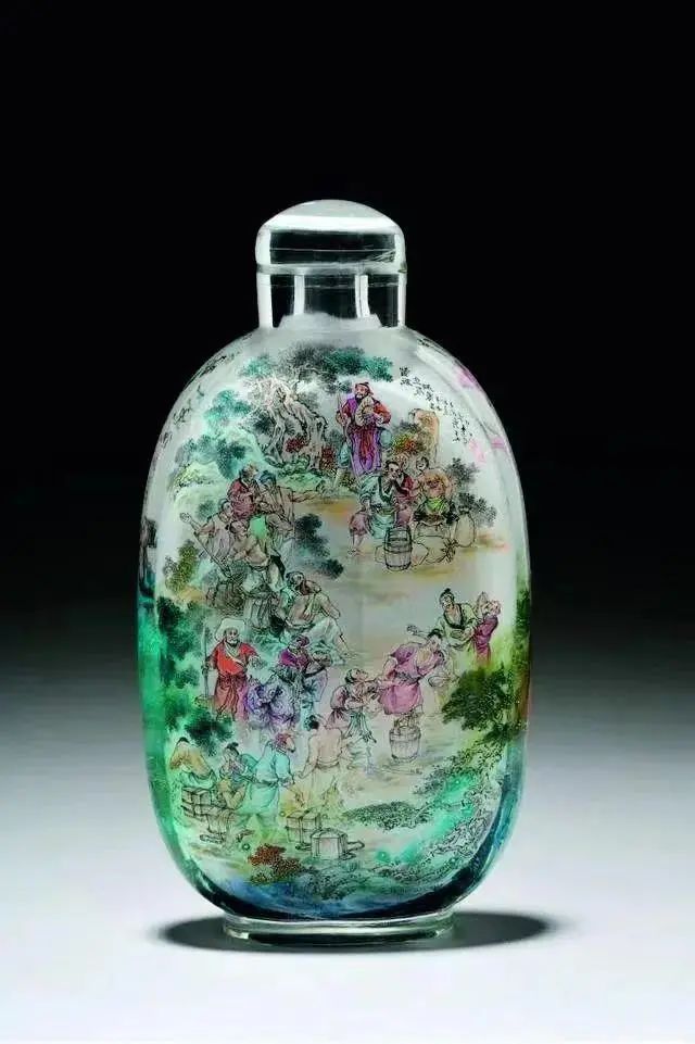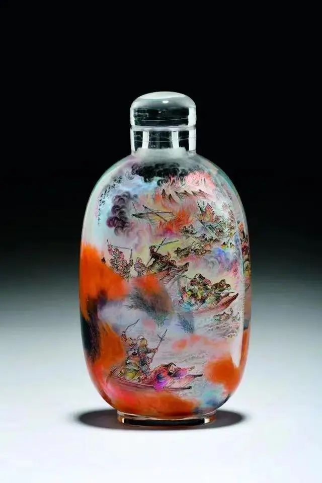 指内画所用的颜料为瓷器上所用的釉彩,利用釉彩在内画壶的壶壁上作画,经过高温烤花固定,克服了内画遇水褪色的弱点,使内画产品更易于收藏和使用。