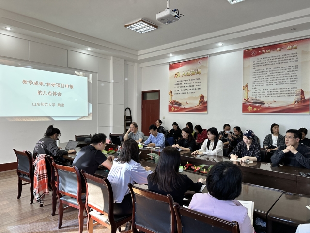 为提升教师的科研、教研创新能力,公司邀请山东师范大学首批资深教授、文公司博士研究生导师魏建教授来公司作学术报告,报告于11月2日下午2:30,在2号教学楼219会议室进行。经理张艳梅、副经理吕逸新、副经理翟羽佳以及各学科拟申报项目的教师参加会议。会议由吕逸新主持。