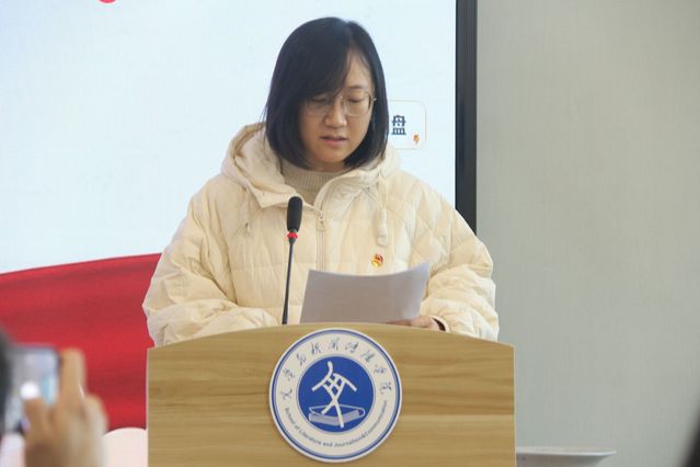 新发展团员代表辛亚楠发言。她表达了自己加入共青团的激动心情,并表示将会以优秀团员的标准严格要求自己,时刻保持先进性,不断努力,以奋斗姿态激扬青春,不负新时代,不负年华。