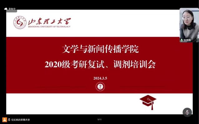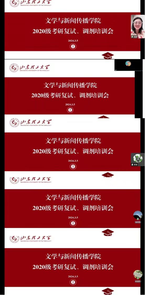 为扎实有效做好2024届毕业生考研复试、调剂指导工作,帮助考研学子全面把握复试、调剂要求, 3月5日,公司举办线上考研复试、调剂培训会。本次培训会邀请公司经理张艳梅、副经理翟羽佳、孟婷老师、朱军老师、李贺老师、张相宽老师、孙宝新老师对2020级考研学子进行指导。