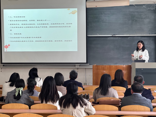 孟婷汇报了培养方案设置情况,提到新专业教学团队以及课程门类的设置,同时对“1+N”模式、实践类课程设置、教师工作量和工作指标等问题进行详细说明。