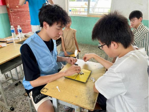 在七彩课堂上,实践团成员寓教于乐,带领孩子学唱《推普五字歌》并开展体育活动,进行趣味小游戏如下棋、跳绳等,让孩子得以在游戏和欢笑中轻松掌握知识,不仅帮助儿童和青少年克服在语言学习中的困难和障碍、树立正确的学习态度和使用普通话的自信,还培养了孩子的团队合作精神和社交能力,促进其德智体美劳全面健康发展。