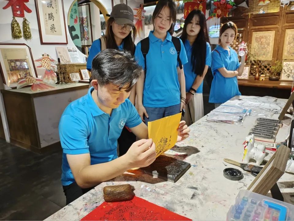 在参观结束后,实践团成员在专业老师的指导下,开始了活字印刷的体验。成员们分组进行排版、涂墨、压印、拆版、检查等操作步骤。通过亲手实践,成员们深刻体会到了木版年画的精细与不易,同时也感受到了这项古老技艺的独特魅力和深厚文化底蕴。