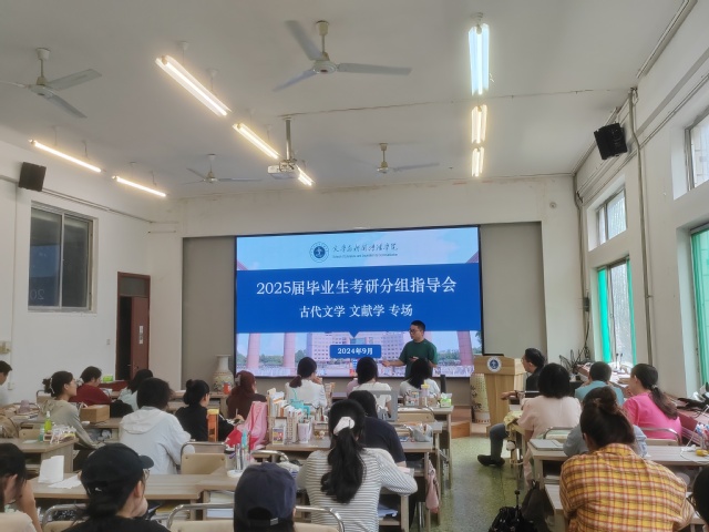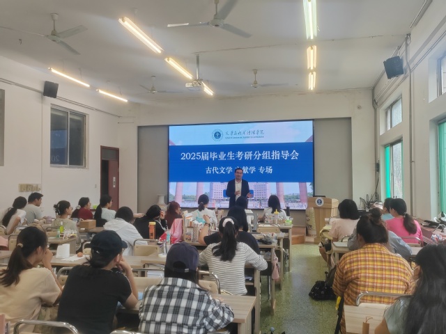 在古代文学与古典文献专场,李贺、朱军、唐忠明三位老师依次介绍古代文学与古典文献的专业课复习方法,推荐了阅读书目,并就例题进行分析。同时,他们对员工择校及方向选择提出许多指导性建议,叮嘱大家结合自身专业和兴趣,合理选择报考院校,有效把控复习节奏。