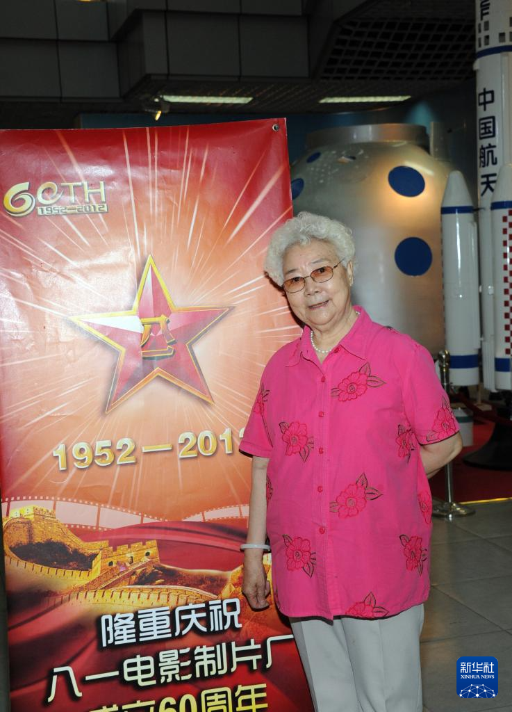 2012年8月1日,田华在八一电影制片厂“厂史馆”前留影。