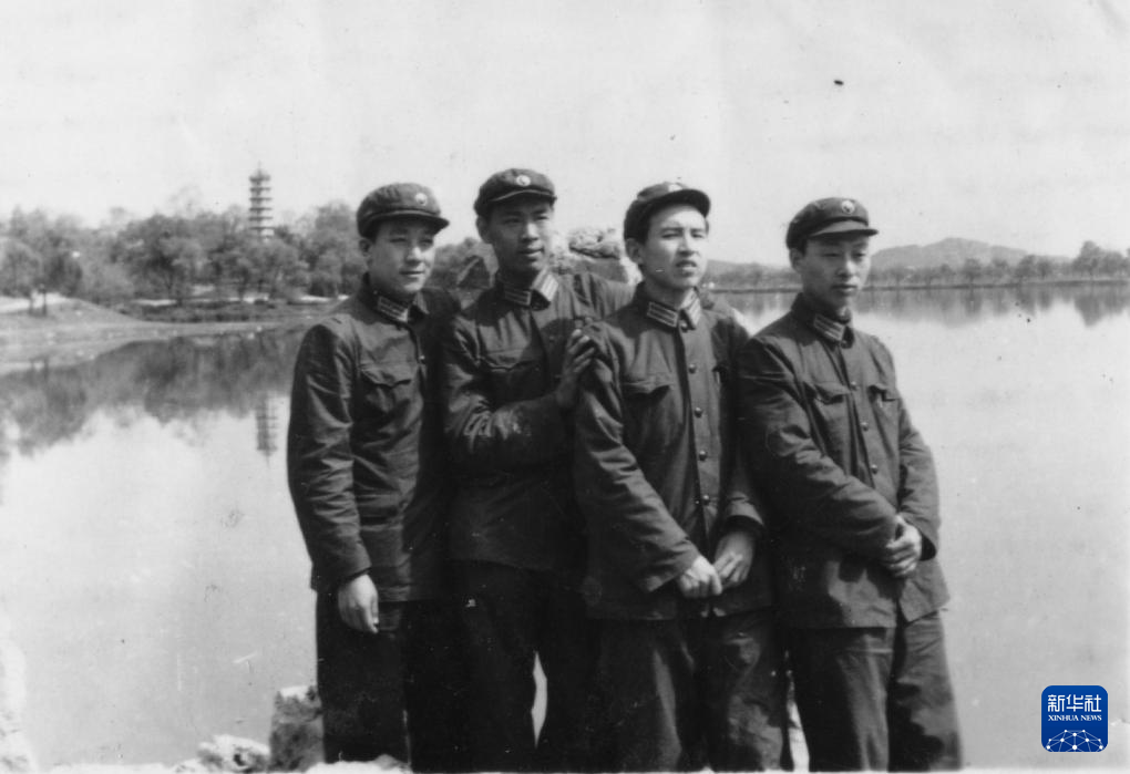 1962年,王小谟(左二)参军分配后和战友合影(资料照片)。(中国电子科技集团有限公司电子科学研究院供图)