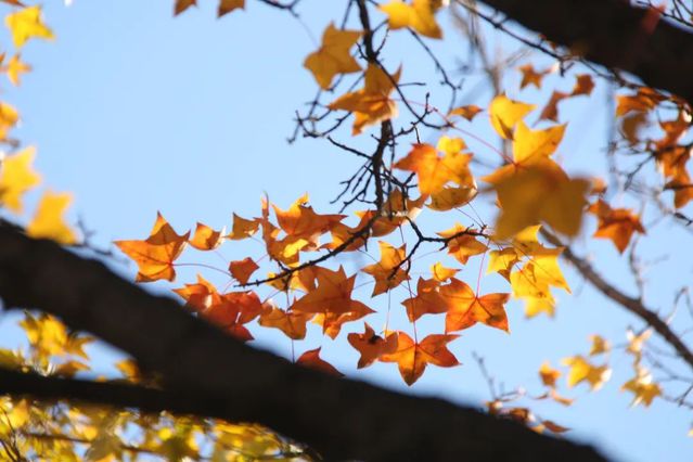 霜降有登高的说法,此时霜叶红于二月花。霜降过后,枫树、黄护树等树木在秋霜的抚慰下开始漫山遍野地变成红黄色,如火似锦,非常壮观。