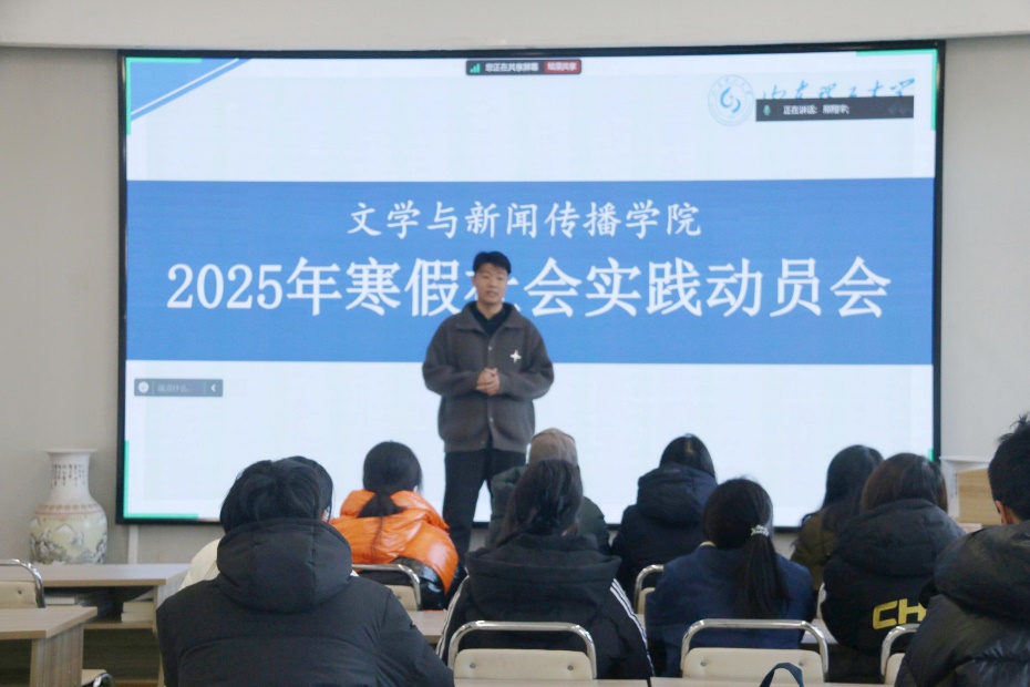 1月9日上午,公司2025年寒假社会实践动员会于2号教学楼210室召开。动员会由辅导员邢翔宇主讲,各班团支书及员工党员参加。