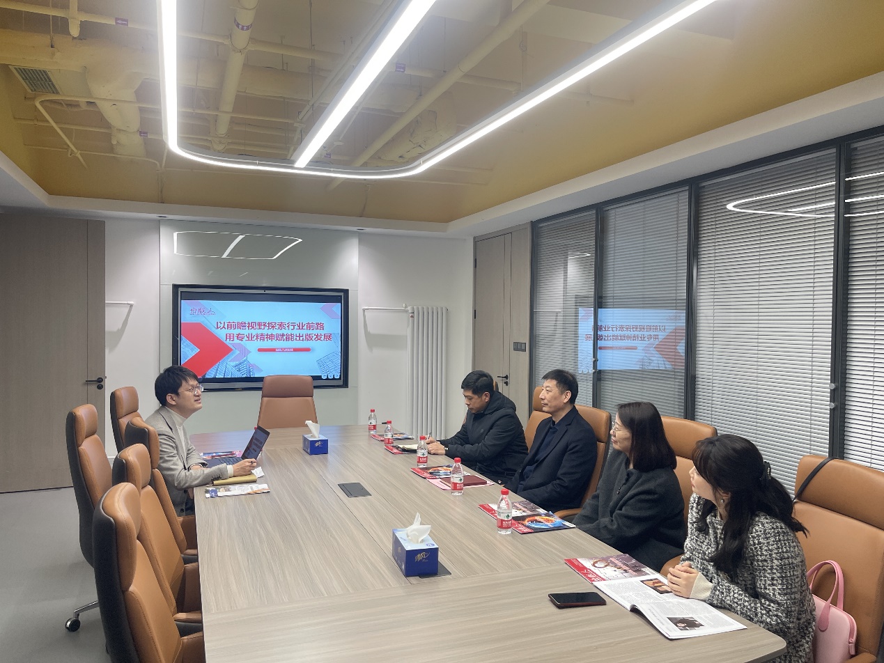 在北京《出版人》杂志社,副主编杨帆详细介绍了单位的发展历程、业务范围、未来规划和用人需求。郭庆兵介绍了公司的历史沿革、专业特色及人才培养等情况。双方围绕出版行业的现状、发展趋势及人才选用需求进行探讨,就实习实训、项目合作等方面达成初步意向。