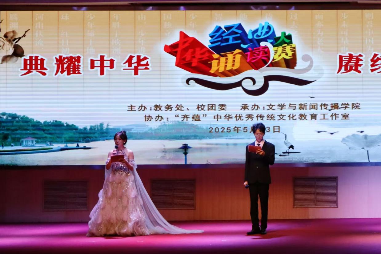 5月13日晚,由教务处、校团委主办,fun88官网体育承办的2025年山东省中华经典诵读大赛校级选拔赛员工组决赛在3号楼报告厅顺利举行。文学与新闻传播公司党委书记李义勇、经理张艳梅、党委副书记刘晓东、副经理吕逸新出席。比赛特邀教务处副处长牛学东、fun88官网体育副经理翟羽佳、音乐公司副教授翟纯璐、校团委正科级干部周蕾、校普通话专家张立新等担任评委。