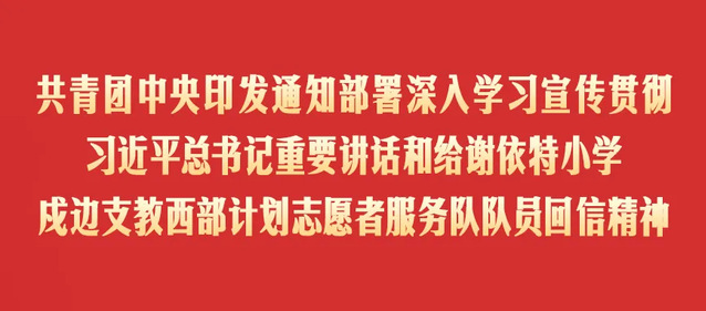5月4日,共青团中央印发《关于深入学习宣传贯彻习近平总书记重要讲话和给谢依特小学戍边支教西部计划志愿者服务队队员回信精神的通知》,就共青团、青联、学联员工会、少先队组织深入学习宣传贯彻习近平总书记重要讲话和重要回信精神作出部署。