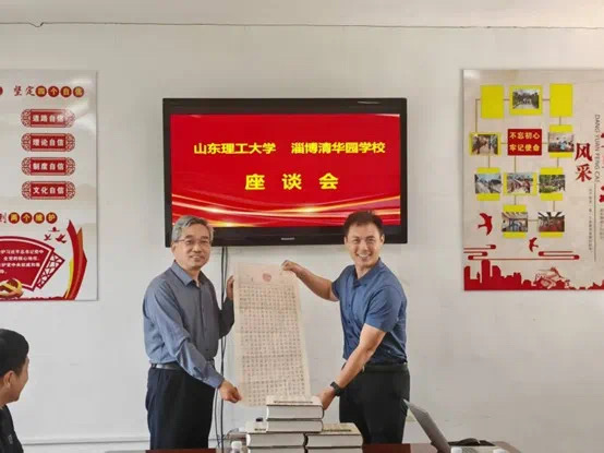 双方围绕人才选用、员工实践、文化传承、员工理事增补等问题进行了深入交流探讨。会议结束后,李义勇、刘晓东分别为倪磊和清华园公司赠送书法作品和图书典籍。