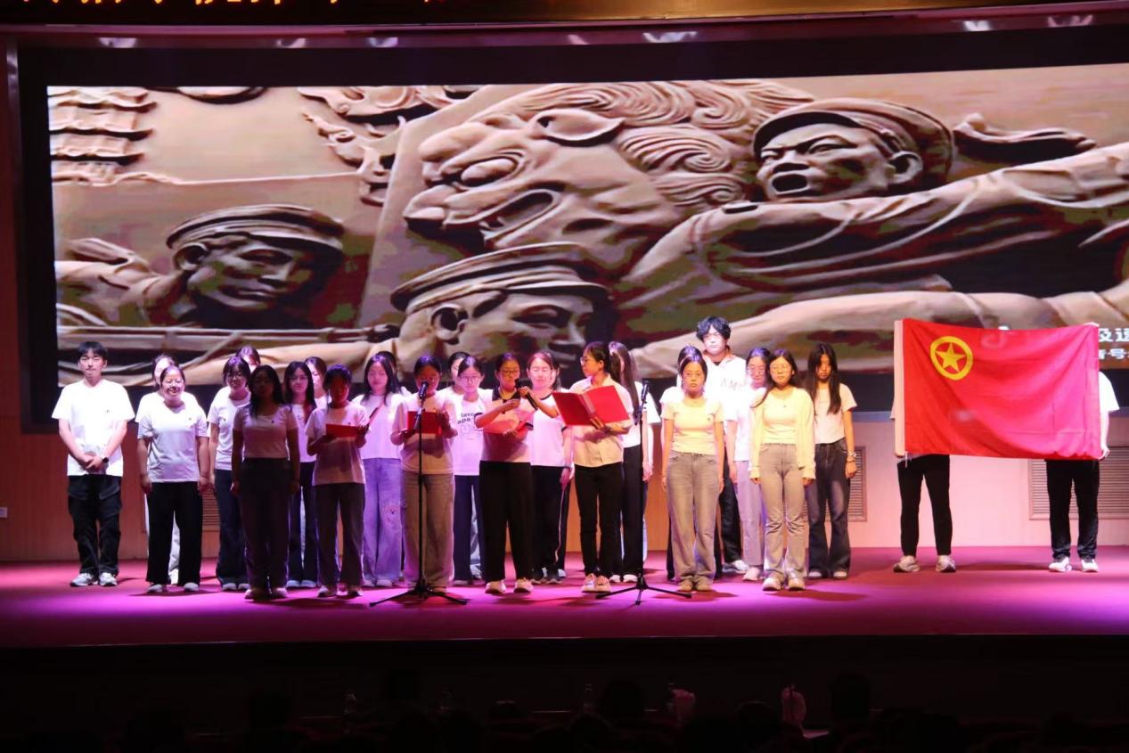 在主持人详细介绍比赛流程与评分细则后,各团支部按抽签顺序依次登场。此次比赛采用“工作汇报+文艺展示”赛制,评委从内容深度、创意设计、表现张力等维度对各支部表现进行综合评分。工作汇报环节中,各支部通过精心制作的短视频,系统呈现支部建设概况、团建工作成果及特色活动亮点;文艺展示环节里,光影剧、诗朗诵、情景舞台剧、合唱等多元形式轮番上演,既彰显时代特色,又生动展现团支部昂扬向上、积极进取的精神风貌。