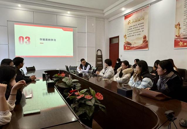 随后,钟云瑞组织大家进行反诈学习,通过具体案例、典型诈骗事件,直观展示各类诈骗手段,深入剖析诈骗分子的作案手法及其所设置的心理陷阱。钟云瑞强调,诈骗无处不在,防不胜防,但只要同学们保持清醒头脑,增强防骗意识,学习防骗技能,就能有效保护自身的生命财产安全。