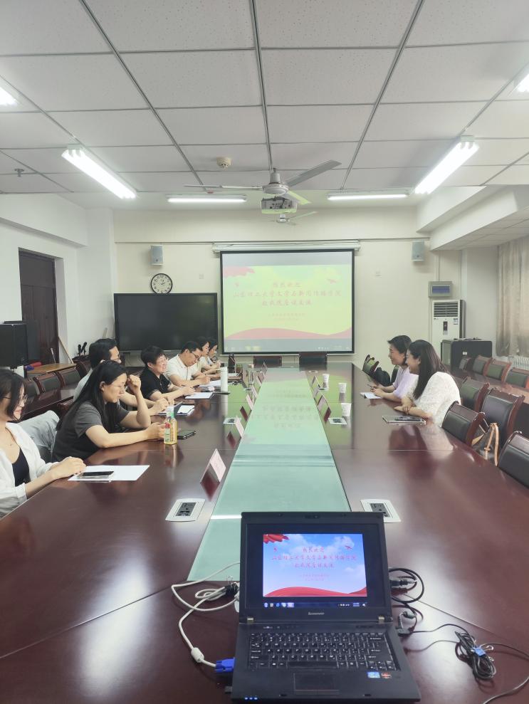 5月29日下午,新传系教职工党支部书记高慧艳、系主任孟婷、副主任郭晓丽赴山东政法公司传媒公司,围绕网络与新媒体专业培养方案修订、专业建设、工作室教学模式等议题进行了交流学习。山东政法公司传媒公司经理孟文彬、副经理常洪卫、副经理王伟亮,网络与新媒体教研室主任王晓红、副主任王淑娟,教师代表梁培培和徐杰参与了座谈。