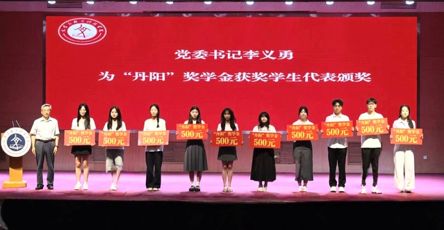 公司副经理吕逸新宣读《“丹阳”奖学金获得者表彰决定》,党委书记李义勇为“丹阳”奖学金获奖员工代表颁奖。