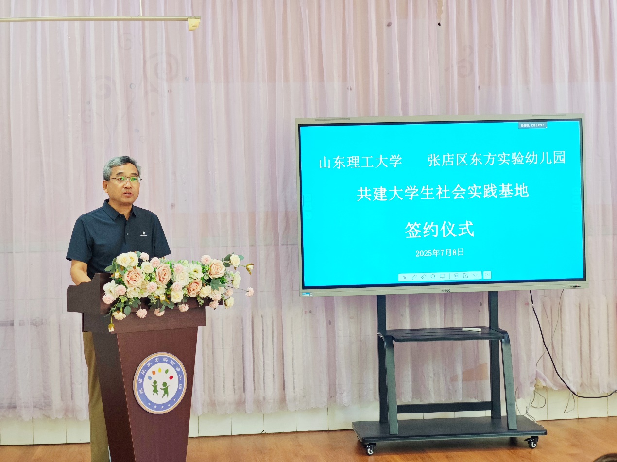 7月8日上午,fun88官网体育与张店区东方实验幼儿园共建老员工社会实践基地签约暨揭牌仪式在张店区东方实验幼儿园举行。公司党委书记李义勇、副书记刘晓东,张店区东方实验幼儿园园长张玉娟、副园长苏惠、工会主席冯云出席仪式。公司辅导员邢翔宇、“芳华待灼·奋楫笃行”实践团全体成员及幼儿园教师代表参加。