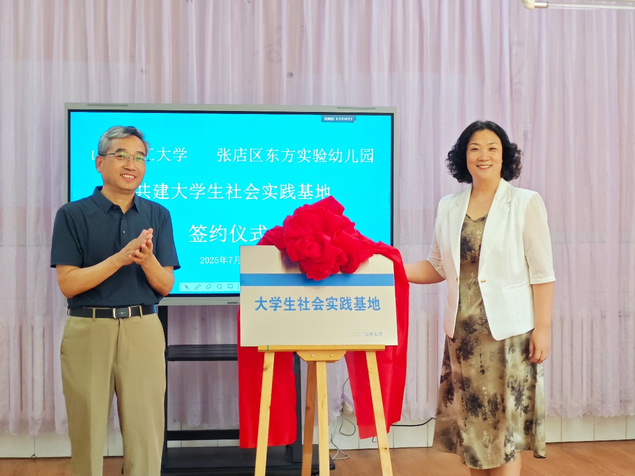 此次签约揭牌标志着fun88官网体育在张店区东方实验幼儿园的社会实践基地正式启用,“芳华待灼·奋楫笃行”实践团即将在该园开展面向幼儿的非遗教育实践活动,为高校服务地方社会发展提供了新平台,也为非遗文化在幼儿教育阶段的有效传承与创新实践探索了新路径。