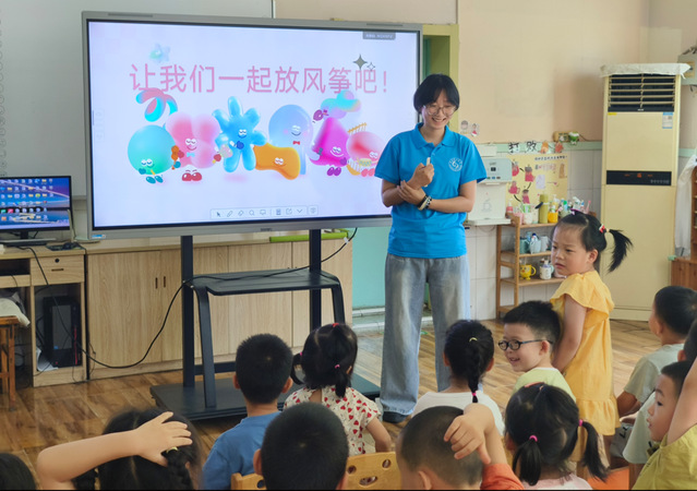 活动中,实践团成员结合风筝图片,生动讲解潍坊风筝“扎、糊、绘、放”四艺的巧技,介绍南通板鹞风筝“一鹞飞,百音和”的哨响奥秘,以及“纸鸢寄情”的千年传说。孩子们在观赏传统纹样、参与互动游戏的过程中,感受着风筝文化的韵味。手工体验环节,孩子们在指导下用彩纸拼贴简易风筝纹样,有的给风筝添上星星尾巴,有的画上彩色爱心,稚嫩的动作间,千年风筝文化的种子悄然扎根。