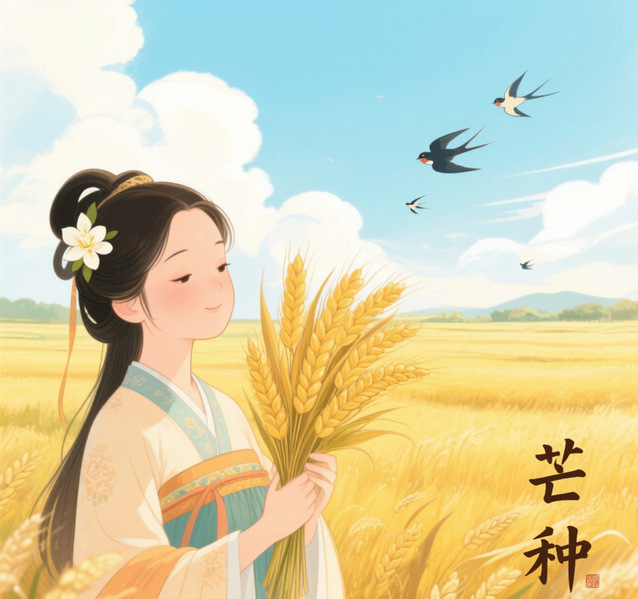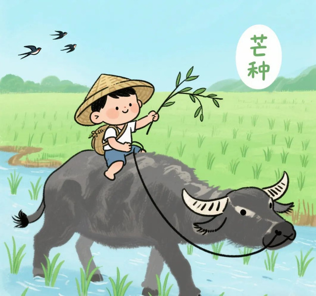 芒种,是二十四节气之第九个节气,夏季的第三个节气,干支历午月的起始。斗指丙,太阳黄经达75°,于每年公历6月5-7日交节。“芒种”含义是“有芒之谷类作物可种,过此即失效”。这个时节气温显著升高、雨量充沛、空气湿度大,适宜晚稻等谷类作物种植。农事耕种以“芒种”这节气为界,过此之后种植成活率就越来越低。