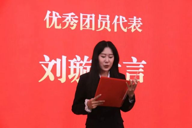 优秀团员代表刘璇在发言中鼓励新团员时刻以团员标准严格要求自己,不断提升思想修养与实践能力,在服务集体与社会奉献中践行入团誓言,展现青春担当。