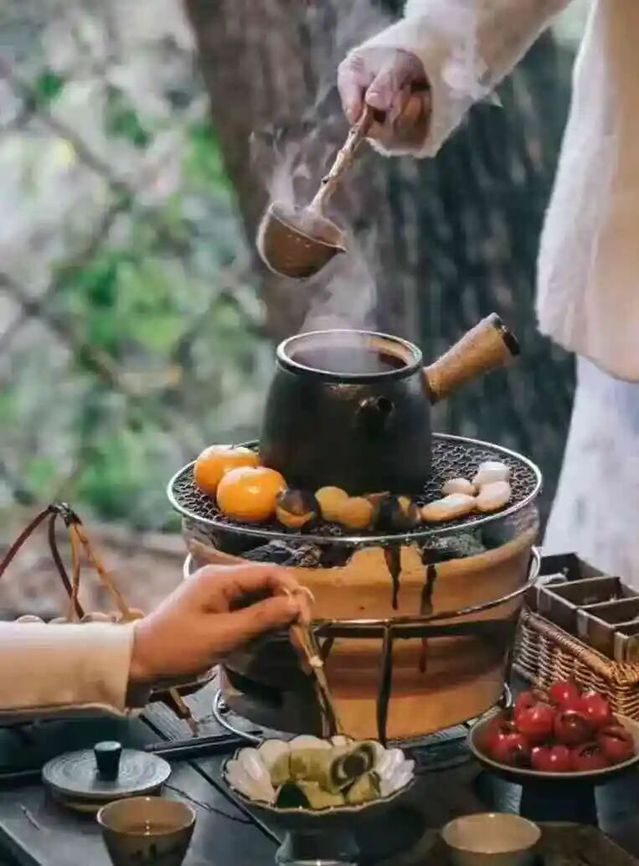 围炉煮茶/温酒:大雪天寒,古人喜聚于室内,围炉煮雪水烹茶(如陆羽《茶经》所记“雪水为上”),或温一壶黄酒、白酒,配坚果、糕点,畅谈叙旧,藏着“暖冬御寒”的生活哲学。