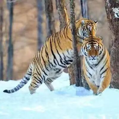 二候 “虎始交”,老虎感知阳气萌动,开始交配繁衍。