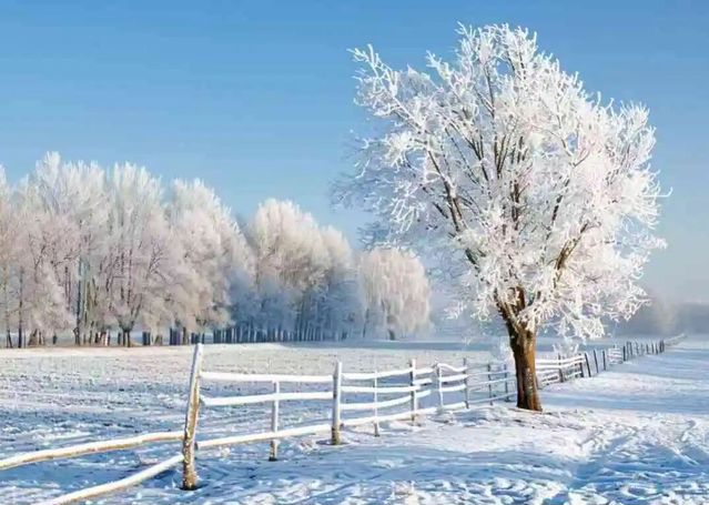 常伴随大风、冰冻天气,空气湿度低、天气干燥,部分地区可能出现 “雾凇” 景观。