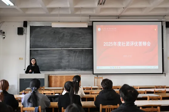 随后,支点创媒学社、蒲公英文学社以及金话筒协会等七支社团队伍按抽签顺序依次进行答辩,各社团答辩人以详实数据为支撑、丰富影像资料与典型活动案例为依托,围绕“社团内部建设与凝聚力”“品牌活动开展与创新”“校园文化影响与社会辐射”以及“未来工作规划与展望”等方面,展开系统全面且条理清晰的总结汇报。