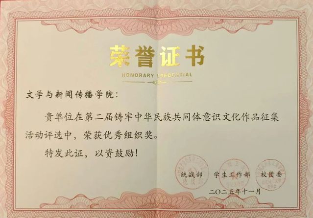 公司获铸牢中华民族共同体意识文化作品征集活动优秀组织奖