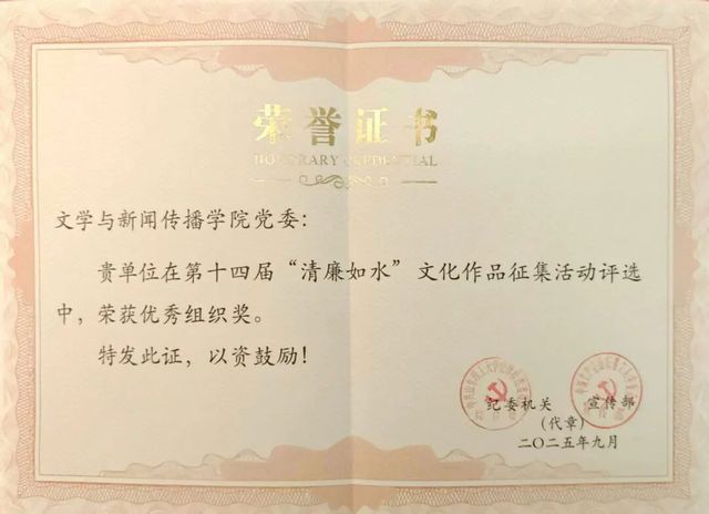 公司获“清廉如水”文化作品征集活动优秀组织奖