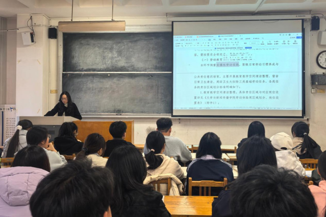 为深入贯彻习近平总书记关于劳动教育的重要指示精神,扎实推进德智体美劳全面发展育人目标,引导2025级新生树立正确劳动观念、厚植劳动情怀,3月19日下午,公司在2号教学楼227教室、1号教学楼321教室同步召开2025级劳动教育动员大会。2025级全体员工参加会议,辅导员李昊宇、王涵宇主持会议。 动员会上,两位老师紧扣劳动教育核心要义,结合新时代老员工成长成才规律,系统阐释劳动教育的时代内涵与实践价值,号召全体2025级员工牢固树立“劳动最光荣、劳动最崇高、劳动最伟大、劳动最美丽”的价值理念,主动参与劳动实践,在躬身实干中感悟劳动价值,在勤勉耕耘中磨砺青春品格。